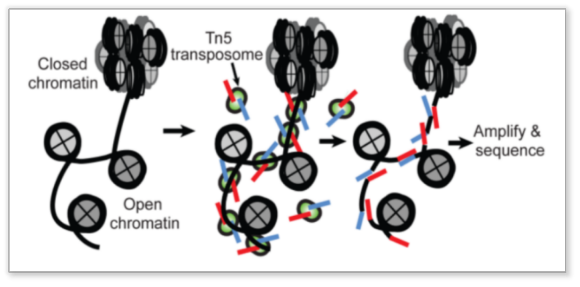 ATAC-Seq技術(shù)的原理是通過轉(zhuǎn)座酶Tn5容易結(jié)合在開放染色質(zhì)的特性,然后對Tn5酶捕獲到的DNA序列進(jìn)行測序。DNA轉(zhuǎn)座,是一種把DNA序列從染色體的一個區(qū)域搬運到另外一個區(qū)域的現(xiàn)象,由DNA轉(zhuǎn)座酶來實現(xiàn)。這種轉(zhuǎn)座插入DNA,也是需要插入位點的染色質(zhì)是開放的,否則就會被高級結(jié)構(gòu)給卡住。