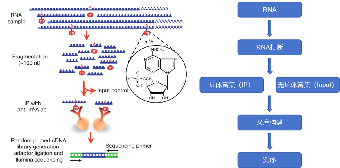 RNA修飾是指發(fā)生在RNA分子上的各種化學(xué)修飾(已超160種),每種修飾都有相應(yīng)的功能,如:穩(wěn)定結(jié)構(gòu)、出核運(yùn)輸、可變剪接、翻譯識(shí)別等。其中甲基化修飾是主要形式之一,約占2/3,RNA的甲基化修飾多位于mRNA、tRNA、rRNA和其他非編碼RNA上。RNA甲基化是指在RNA分子上添加甲基化修飾的過(guò)程,通常是在RNA甲基轉(zhuǎn)移酶的催化下將甲基供體中的甲基基團(tuán)轉(zhuǎn)移至RNA堿基的現(xiàn)象,一般發(fā)生在RNA轉(zhuǎn)錄后,是一種重要的表觀遺傳學(xué)調(diào)控機(jī)制,可以影響RNA的穩(wěn)定性、成熟、轉(zhuǎn)運(yùn)、翻譯和其他功能。