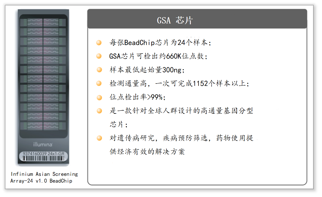 Infinium Global Screening Array-24 v1.0 (GSA) BeadChip 是一款先進(jìn)的基因分型芯片,可為群體規(guī)模遺傳研究、變異篩選和精準(zhǔn)醫(yī)學(xué)研究提供高價(jià)值、可擴(kuò)展且經(jīng)濟(jì)高效的解決方案。