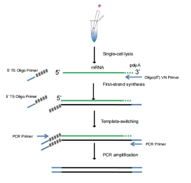 Smart-seq2技術(shù)可以在單細(xì)胞水平對(duì)帶Poly (A)的RNA進(jìn)行全長(zhǎng)轉(zhuǎn)錄組擴(kuò)增及高通量測(cè)序,能夠滿足高靈敏度、低偏好性的cDNA擴(kuò)增,得到全長(zhǎng)轉(zhuǎn)錄本,實(shí)現(xiàn)高水平的序列模板轉(zhuǎn)換。Smart-seq2技術(shù)有較好的覆蓋范圍,可檢測(cè)到稀有轉(zhuǎn)錄本,無需額外的專業(yè)設(shè)備,應(yīng)用范圍較廣,可以解決傳統(tǒng) RNA定量技術(shù)在早期胚胎發(fā)育、干細(xì)胞、癌癥、免疫等研究領(lǐng)域中存在的樣品量極低或細(xì)胞異質(zhì)性的問題,是在單細(xì)胞水平研究基因表達(dá)強(qiáng)有力的工具,極大地拓展了RNA-seq 的應(yīng)用范圍。